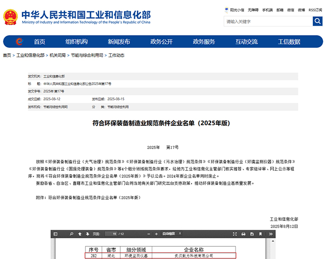 近日,國(guó)家工業(yè)和信息化部發(fā)布《符合環(huán)保裝備制造業(yè)規(guī)范條件企業(yè)名單(2025年版)》,敢為科技憑借在“環(huán)境監(jiān)測(cè)儀器”領(lǐng)域的扎實(shí)技術(shù)實(shí)力、規(guī)范的生產(chǎn)管理體系與持續(xù)的創(chuàng)新實(shí)踐,成功通過(guò)專家評(píng)審與公示程序,入選國(guó)家工信部權(quán)威名單!