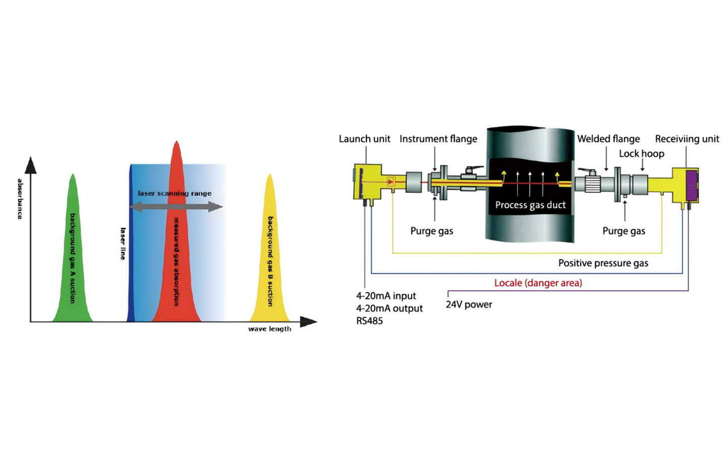 激光直接穿過被測環境(煙道、管道等),過程中目標氣體分子會選擇性吸收部分激光能量。