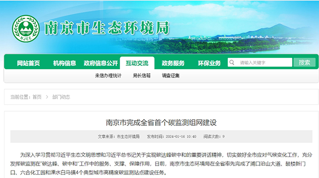 近日,南京市生態(tài)環(huán)境局官網(wǎng)、官微發(fā)布了關(guān)于《南京市完成全省首個(gè)碳監(jiān)測(cè)組網(wǎng)建設(shè)》的最新進(jìn)展。南京市生態(tài)環(huán)境局在全省率先完成了浦口沿山大道、鼓樓新門(mén)口、六合化工園和溧水白馬鎮(zhèn)4個(gè)典型城市高精度碳監(jiān)測(cè)站點(diǎn)建設(shè)任務(wù)。