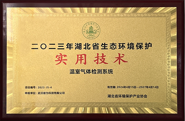 武漢敢為科技憑借“溫室氣體檢測系統(tǒng)”榮獲“2023年湖北省生態(tài)環(huán)境保護實用技術”
